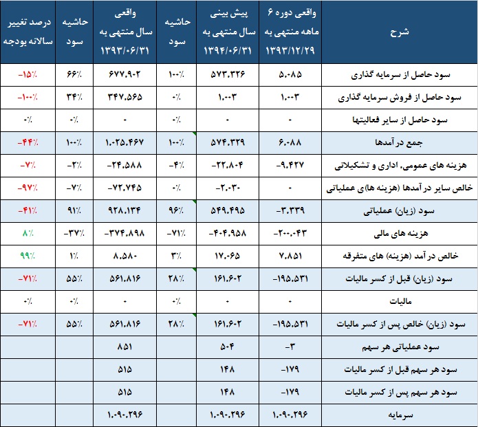 درآمد شرکت مطابق جدول فوق حدود ۴۴% کاهش داشته است که این به دلیل فروش چند شرکت از جمله سرمایه گذاری اقتصاد نوین، شرکت سرمایه گذاری عمران و مسکن سازان ایران، نوسازی و ساختمان تهران و عمران و توسعه فارس بوده است...