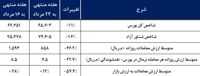 ارزش معاملات به کمترین مقدار خود طی 8 هفته اخیر رسید و با توجه به تعطیلی میان هفته، میانگن ارزش بازار بورس به حدود 86 میلیارد تومان رسید. همچنین شاخص کل به کمترین مقدار خود طی 6 هفته اخیر رسید که از لحاظ تکنیکالی سطح حمایتی مناسب به حساب می آید اما انتظار برای تقویت بازار و ورود نقدینگی همچنان مهم ترین چالش بازار سرمایه به حساب می آید. ورود سرمایه حدودا 500 میلیارد تومانی در روزهای پیش از توافق به بورس و خروج پلکانی بخشی از آن طی مدت یکماه اخیر مهم ترین دلیل رکود کنونی ست کما اینکه در این مدت عرضه سنگین در روند مثبت چه از سمت حقوقی ها و چه از سمت خریداران مذکور مجال رشد را به بازار بورس نداده است. در طی چند هفته آتی تکلیف امریکا با مجلس سنا یا کنگره مشخص خواهد شد و بازار بورس احتمالا با این نتیجه گیری، دل سهامداران را شاد خواهد کرد. این موضوع احتمالا در نیمه دوم شهریور ماه شدت بیشتری خواهد گرفت تا آن زمان همانگونه که بارها گفته ایم بهتر است دل به سهام کوچک بست، به خصوص آنکه تسویه کارگزاری ها در پایان سال مالی آنها ممکن است از رونق کوتاه مدت در روزها و نیمه نخست شهریور بکاهد بازار جلوگیری کند اما با این حال سهام کوچک همچنان مورد توجه سهامداران و فعالان خواهد بود. جزئیات بیشتر را می توان در جدول زیر مشاهده نمود.
