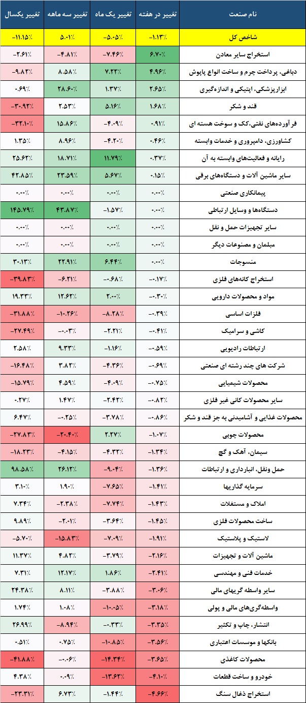 جزئیات بیشتر با زبان نموداری در زیر آورده شده است. ضمن آنکه در ادامه مقایسه شاخص شناور آزاد و شاخص کل آورده شده اند.