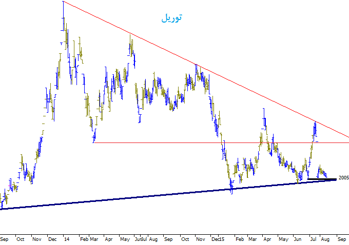 توریل پس از مجمع سالیانه با افت قیمتی مواجه شد و فشار فروش آن را تا نزدیکی 200 تومان آورده است. این سهم که با کف ترند صعودی بلند مدت خود در این محدوده برخورد خواهد کرد، برای خریداران ریسک کمی را به همراه خواهد داشت.