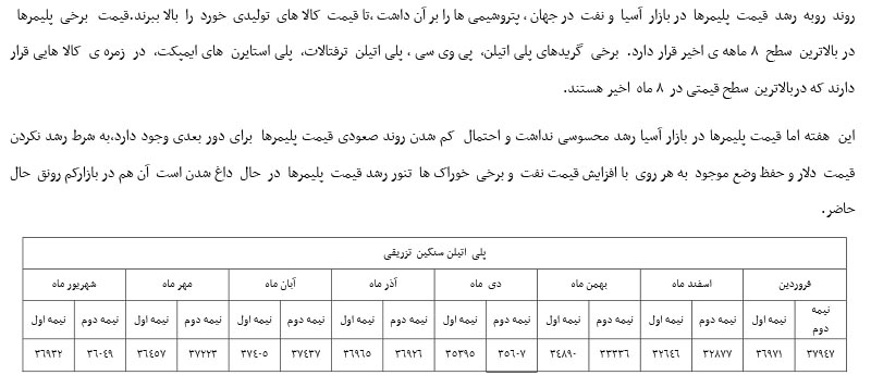 روند روبه رشد قیمت پلیمرها در بازار آسیا و نفت در جهان ، پتروشیمی ها را بر آن داشت ،تا قیمت کالا های تولیدی خورد را بالا ببرند.قیمت برخی پلیمرها در بالاترین سطح ٨ ماهه ی اخیر قرار دارد.