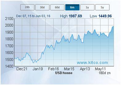 روی با تحویل سه ماه ه رشد 0.5 درصدی در بازار آمریکا داشته و قیمت تسویه 1992 دلار/تن در ساعت 5:51 در بازار فلزات لندن را ثبت کرد . همچنین قیمت LME روی پیش از این رکورد 2013 دلاری در هرتن را از جولای گذشته تاکنون را به ثبت رساند رشدی در محدوده 5 درصدی نسبت به دو هفته گذشته.
