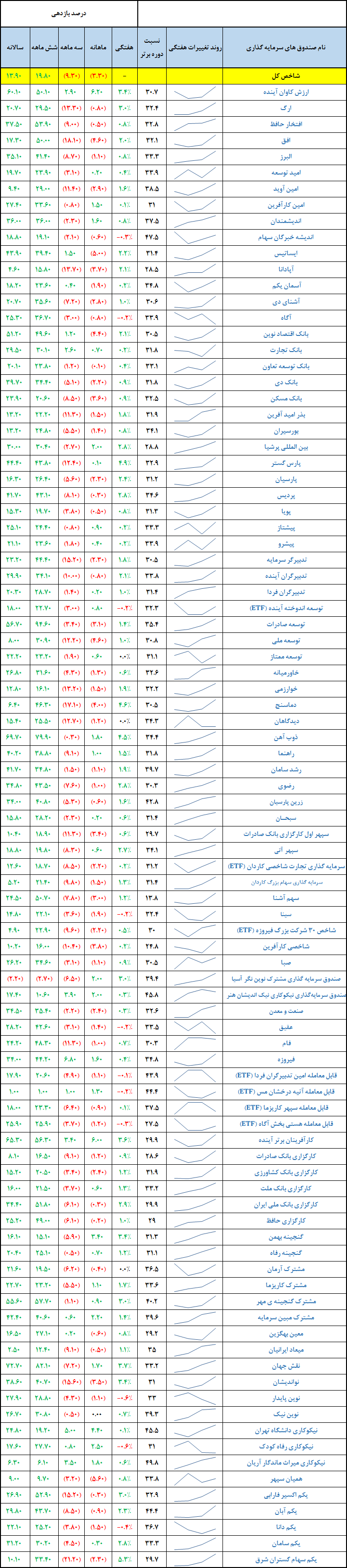بورس24 : اطلاعات دقیق و تحلیلی از 93 صندوق سهام را در جداول زیر مشاهده می نمایید. لازم به ذکر است این جداول بر اساس اطلاعات روزانه صندوق ها طی یک هفته گذشته به روز رسانی شده است : (جداول پیوست بر حسب حروف الفبا مرتب شده اند)