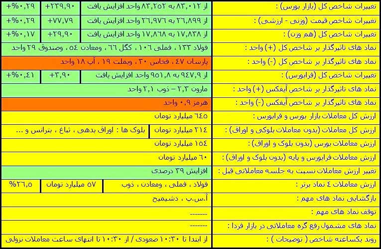 2) جدول بررسی آخرین وضعیت شاخص ها و منحنی معاملات بازار :