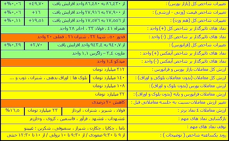 2) جدول بررسی آخرین وضعیت شاخص ها و منحنی معاملات بازار :