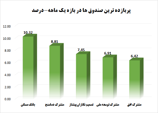 بورس24 : شاخص کل بورس طی معاملات هفته گذشته سرانجام توانست کانال 88 هزار واحدی را فتح کند، در این میان نوسانات قیمت در بازار جهانی، نرخ دلار و همچنین ریسکهای سیاسی از جمله مهمترین عوامل برای ارزیابی روند شاخص کل در هفتههای آتی عنوان می شوند. در این شرایط اکثر کارشناسان با ابراز امیدواری نسبت به کاهش تنشهای سیاسی به انتظار روند آتی نشستهاند. اکثر صندوق های سرمایه گذاری در سهام نیز در این مدت توانستند عملکرد مثبت قابل قبولی بر جای گذارند که صندوق های مشترک دماسنج، تصمیم نگاران پیشتاز، بانک خاورمیانه، مبین سرمایه و سپهر کاریزما بالاترین بازدهی را داشتند. از سوی دیگر در میان شاگرد آخرهای این هفته که تعدادشان انگشت شمار بود، سپهر آتی خوارزمی، یکم سهام گستران شرق و مشترک سیب ضعیف ترین عملکرد را ثبت کردند. همچنین طی یک ماهه گذشته همانطور که در جدول زیر مشاهده می شود، صندوق سرمایه گذاری بانک مسکن با ثبت بازده 10.3 درصد توانسته بالاترین سود را نصیب سهامداران کند، پس از آن می توان به صندوق های دماسنج، تصمیم نگاران پیشتاز، توسعه ملی و افق اشاره کرد.