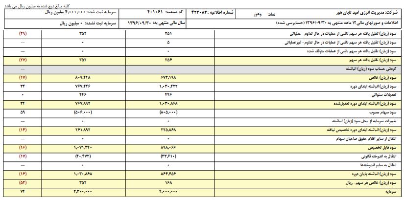 در ابتدای این جلسه حسنعلی تقی زاده مدیرعامل شرکت گزار ش ی از هیئت مدیره را قرائت کرد و گفت: شرکت مدیریت انرژی امید تابان هور در سال 96 اقدامات اساسی زیادی را اجرایی کرد که افزایش سرمایه این شرکت و شرکت در افزایش سرمایه شرکت های زیرمجموعه از جمله آنها بود .