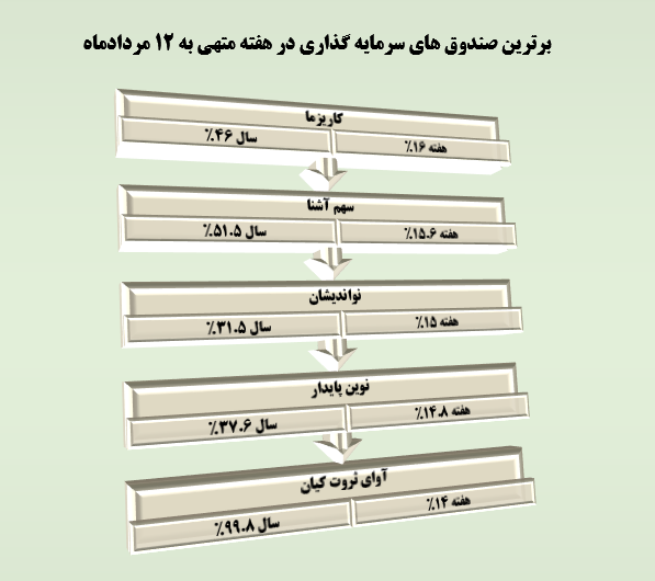 بورس24 : همزمان با رکورد بورس در هفته گذشته، نماگر بازار رشد چشمگیر 13.9 درصدی را به ثبت رساند. در کنار ارزندگی سهام، انتشار اخبار امیدوار کننده در خصوص بسته جدید ارزی دولت به اقبال معامله گران به بازار منجر شد. براین اساس بازدهی بورس تهران از ابتدای سال جاری به مرز 30 درصد رسیده است. طی هفته منتهی به 12 مردادماه صندوق های سرمایه گذاری در سهام نیز متاثر از این روند، بازدهی قابل توجه ای را نصیب سهامداران کردند که در این بین صندوق های کاریزما، سهم آشنا، نواندیشان، نوین پایدار و آوای ثروت کیان موفق به کسب سود بین 14 تا 16 درصد شدند.