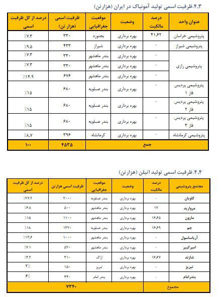 مدیر عامل شرکت نفت و گاز تامین ضمن اشاره به اینکه صنعت در شرایط رقابتی فعالیت داشته است، گفت: شرکت بر اساس درصد فعالیت و مالکیت خود در شرکت های پتروشیمی و ظرفیت اسمی فعالیت های خوبی داشته که در جداول زیر به آن ها اشاره شده است.