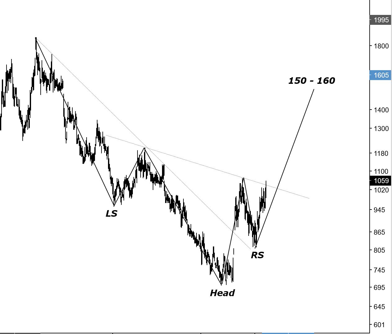 طی سه سال گذشته شاهد ریزش سنگین قیمت در نمودار تعدیل شده بودیم. در حال حاضر آرایش قیمت مشابه الگوی کلاسیک سر و شانه کف است....