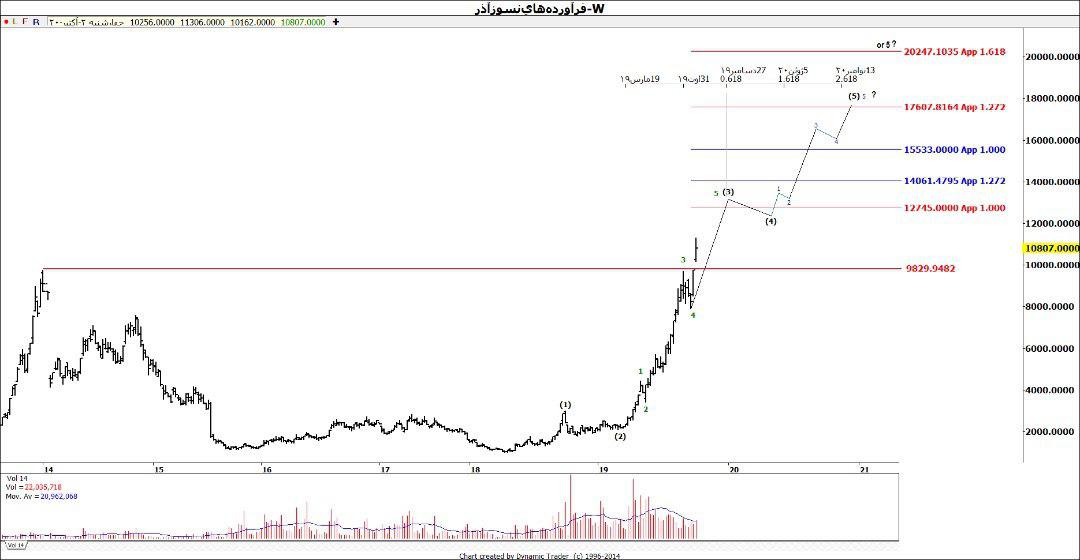 در ادامه هدف موج 5 در تحلیل هفتگى ( بلندمدت ) محدوده قیمتى 2000 تومان است.