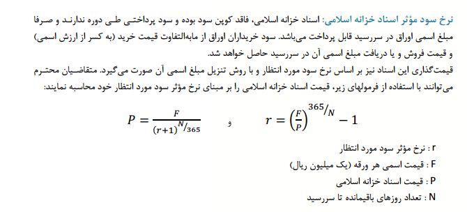 یک روز کاری بعد از عرضه اولیه اسناد خزانه اسلامی، معاملات این اسناد در بازار ابزارهای نوین مالی فرابورس ایران انجام می شود. دارندگان و متقاضیان خرید می توانند با مراجعه به کارگزاران عضو فرابورس اقدام به خرید یا فروش این اوراق نمایند. نحوه نرخ گذاری و کشف قیمت اسناد خزانه اسلامی بر مبنای عرضه و تقاضا و با ساز و کار حراج تعیین خواهد شد. این اسناد فاقد کوپن سود بوده و سود پرداختی طی دوره ندارد و صرفا مبلغ اسمی اوراق در سررسید قابل پرداخت است. سود خریداران اوراق از مابه التفاوت قیمت خرید (به کسر از ارزش اسمی) و قیمت فروش و یا دریافت مبلغ اسمی آن در سررسید حاصل خواهد شد. ضمنا ماشین حساب محاسبه نرخ بازده نیز در سایت فرابورس و در قیمت بازار، ابزارهای نوین مالی، اسناد خزانه اسلامی، ماشین حساب محاسبه بازده اسناد خزانه اسلامی قرار داده شده است.