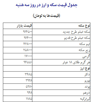 جدول قیمت انواع سکه و ارز در بازار روز سه شنبه منتشر شد.