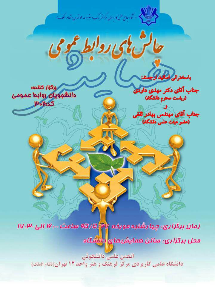 سمینار چالش های روابط عمومی در ایران در دانشگاه جامع علمی-کاربردی فرهنگ و هنر واحد 12 تهران برگزار شد.