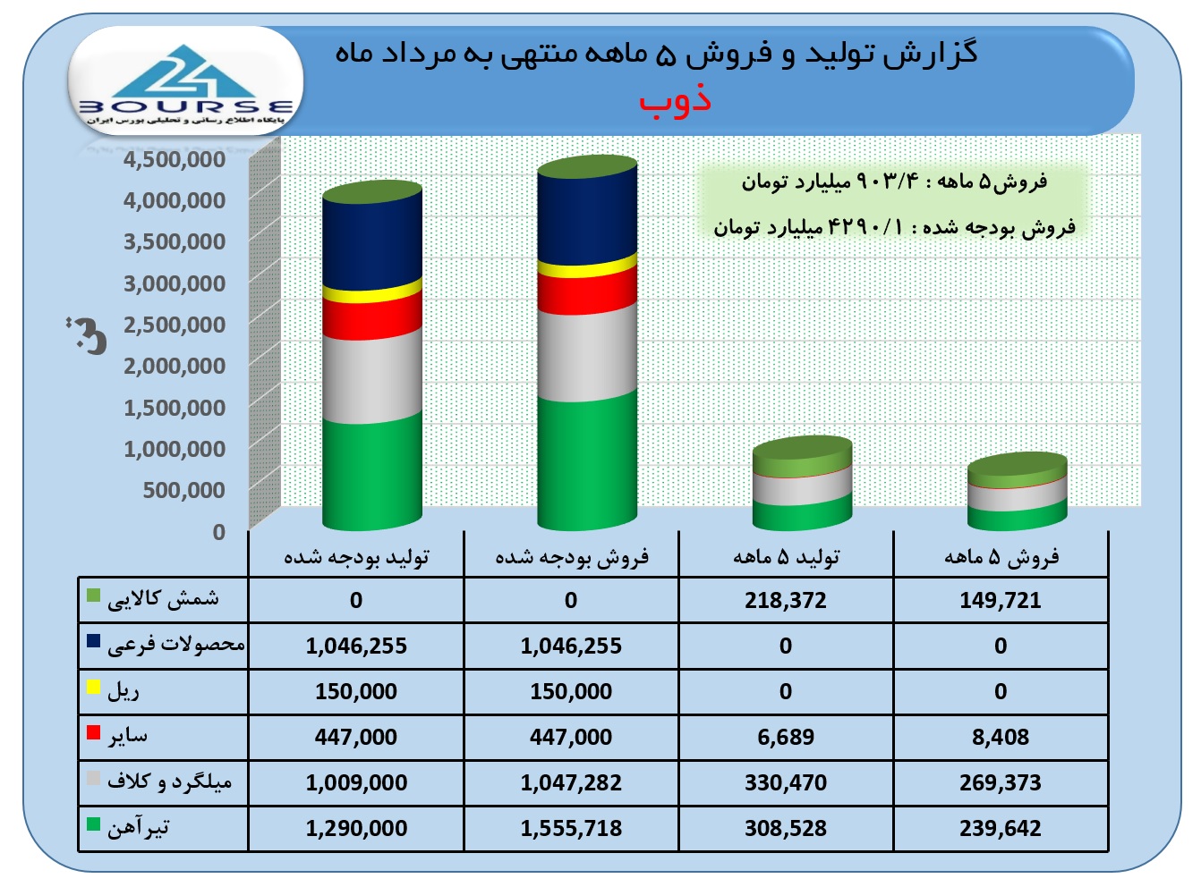 ذوب آهن در ۵ ماه نخست سال تنها به ٢١ درصد از مبلغ فروش خود دست یافته است.