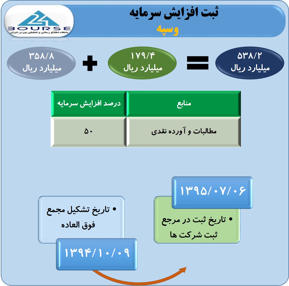 وسپه افزایش سرمایه ۵٠ درصدی خود را ثبت کرد.