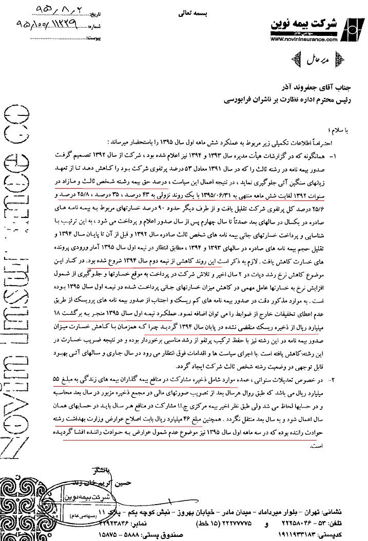 نوین اطلاعات تکمیلی در رابطه با عملکرد ۶ ماهه خود ارائه کرد.