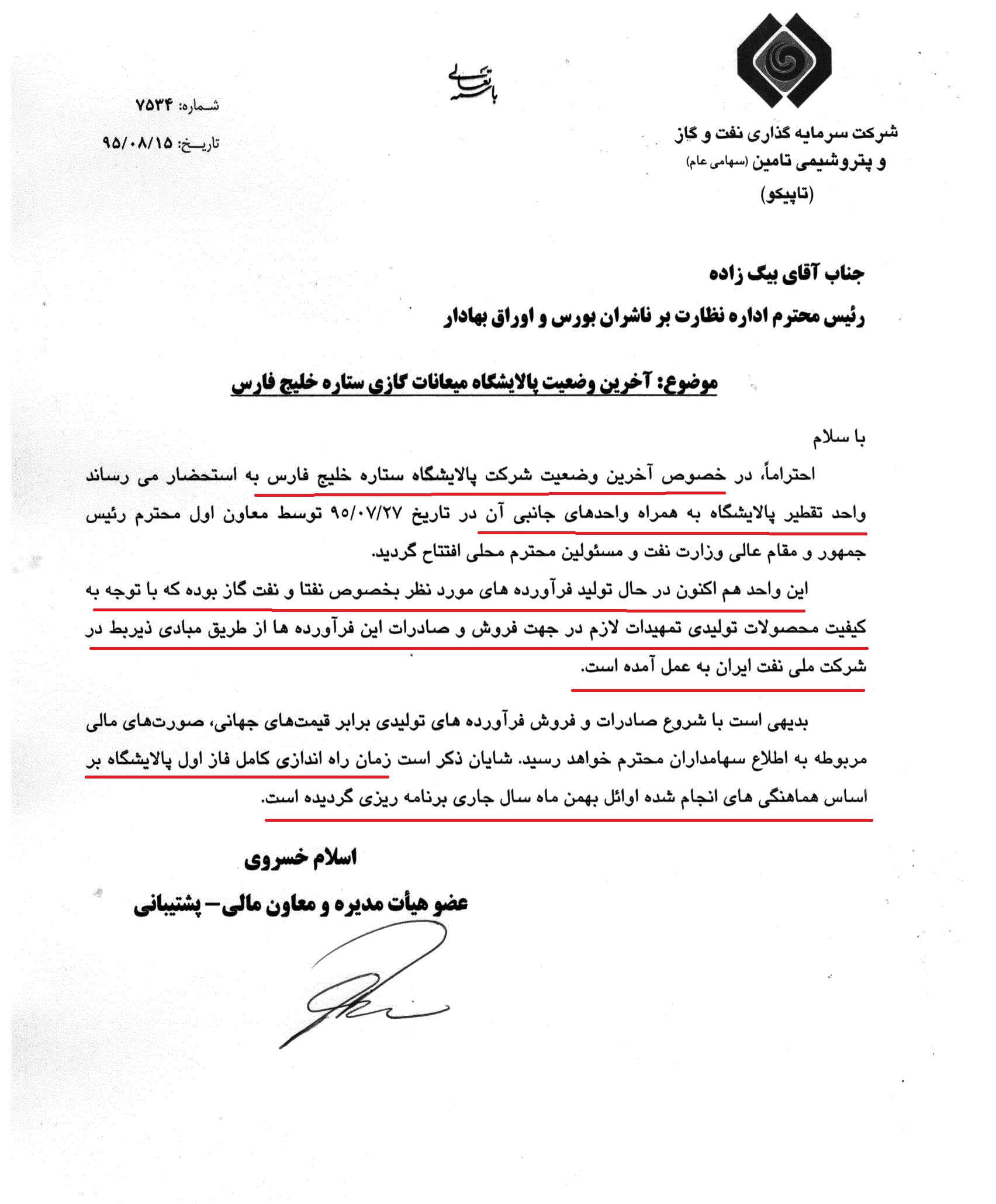 تاپیکو در اطلاعیه ای زمان راه اندازی کامل فاز اول پالایشگاه ستاره خلیج فارس را اعلام کرد.