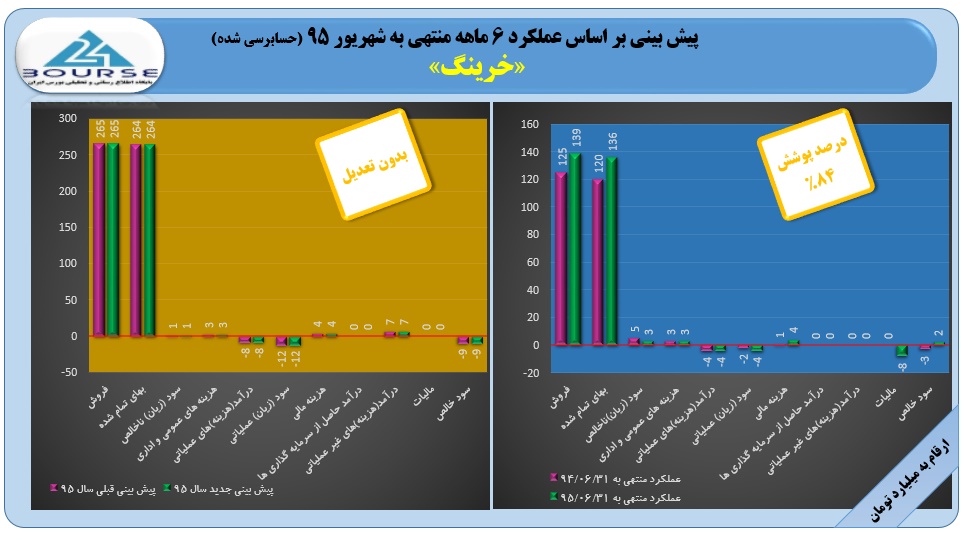 بورس24 : گزارش حسابرسی شده دوره 6 ماهه شرکت رینگ سازی مشهد (خرینگ) همانند گزارش حسابرسی نشده بود و زیان 204 ریالی برای هر سهم پیش بینی شده که تا دوره مذکور 84 درصد آن محقق شده است.