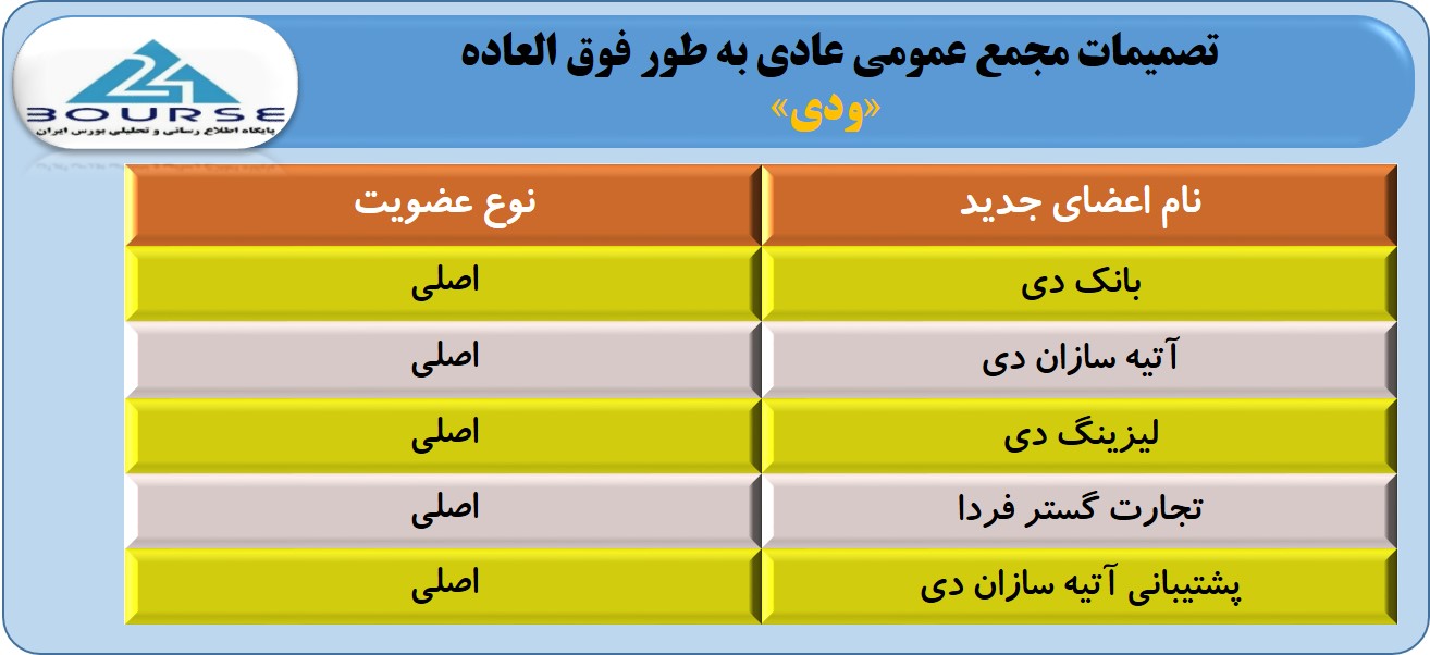 اعضای هیأت مدیره ودی با تغییر یک عضو حقوقی به مدت ٢ سال انتخاب شدند.