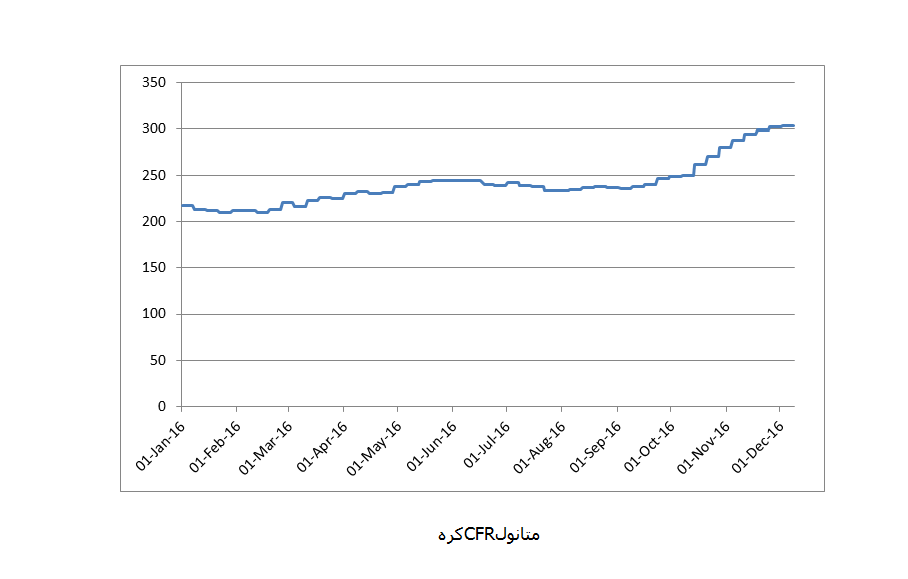 روز جمعه قیمت متانول CFR کره با رشد 29 دلاری به 333 دلار/تن رسید. در سایر مناطق با اهمیت آسیا نیز شاهد رشد قیمت متانول نسبت به هفته گذشته بودیم. قیمت متانول CFR چین با رشد 39 دلاری 332 دلار/تن اعلام شد .