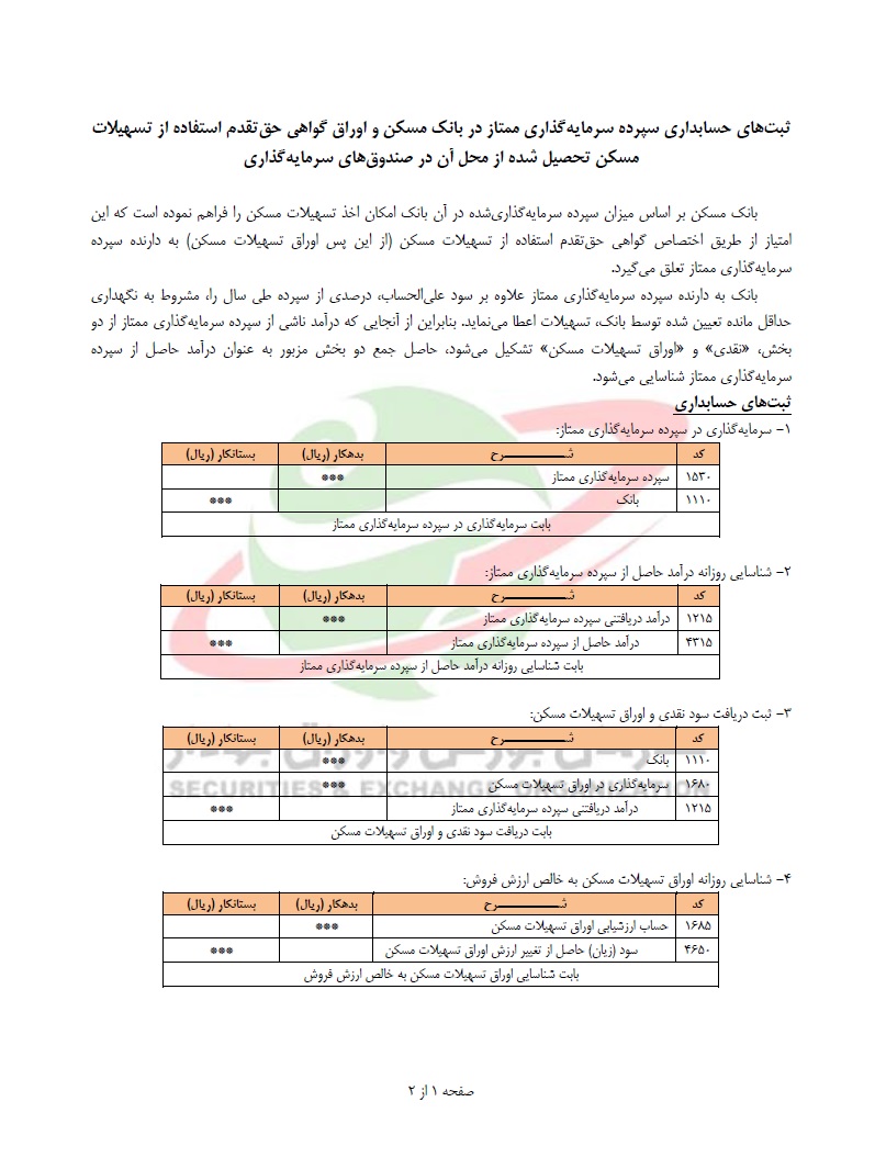 سازمان بورس اوراق بهادار در رابطه با ثبت های حسابداری سپرده های سرمایه گذاری در بانک مسکن و اوراق گواهی حق تقدم استفاده از تسهیلات مسکن ابلاغیه ای صادر نمود.
