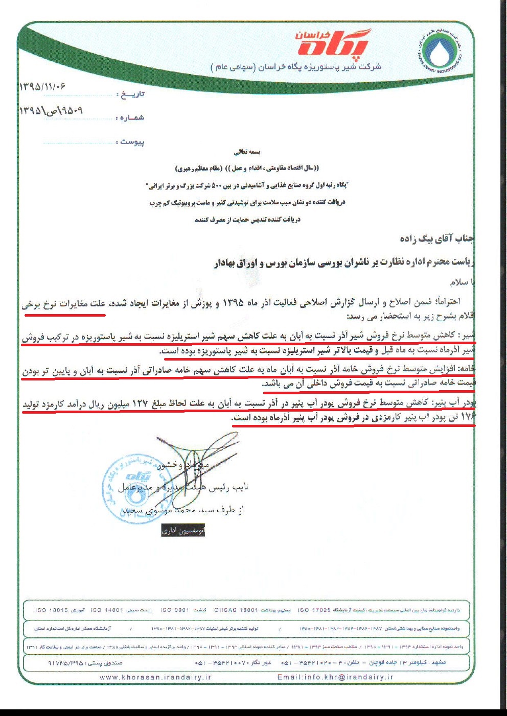 شرکت شیر پاستوریزه پگاه خراسان در خصوص تغیرات حاصل شده در نرخ محصولات خود، توضحیاتی ارائه کرد.
