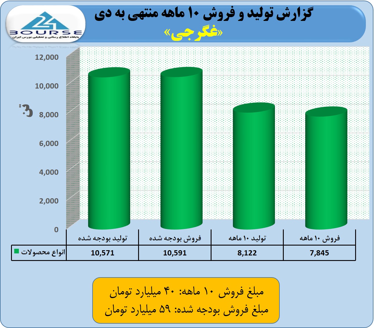 بورس24 : شرکت بیسکوئیت گرجی (غگرجی) در 10 ماهه منتهی به دی، 77 درصد از مقدار تولید و 74 درصد از مقدار فروش بودجه شده را محقق کرد. این میزان تولید و فروش 40 میلیارد تومان درآمد به همراه داشته که معادل 68 درصد مبلغ فروش پیش بینی شده می باشد.