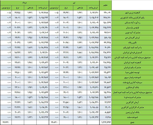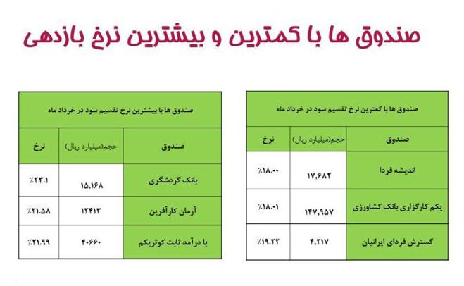 میزان بازدهی صندوق ها نیز به شرح زیراست: