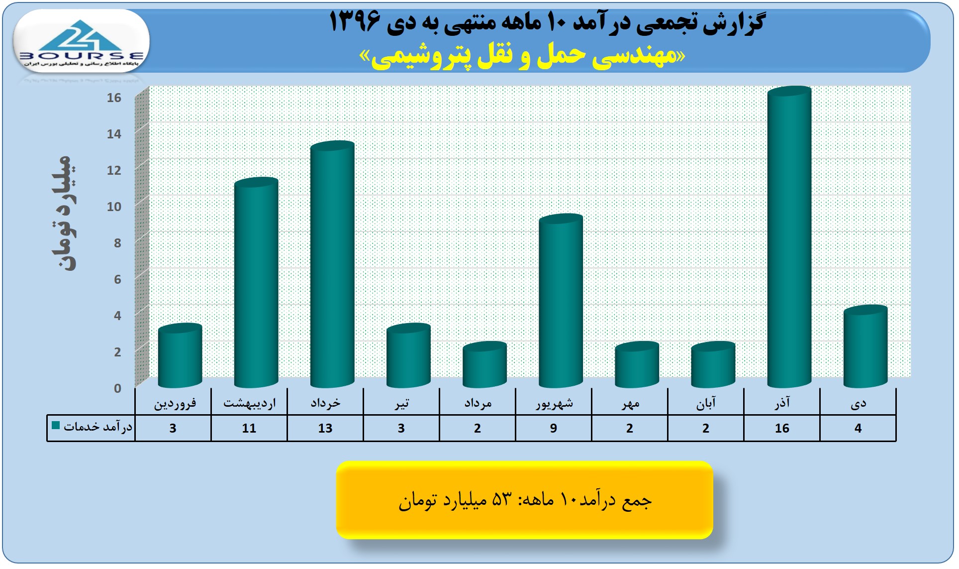 به گزارش کدال نگر بورس ٢۴، شرکت مهندسی حمل و نقل پتروشیمی در ١٠ ماهه موفق به کسب ۵٣ میلیارد تومان درآمد از خدمات خود شد. این شرکت در آذر ماه بیشترین میزان درآمد خود را تجربه نمود.