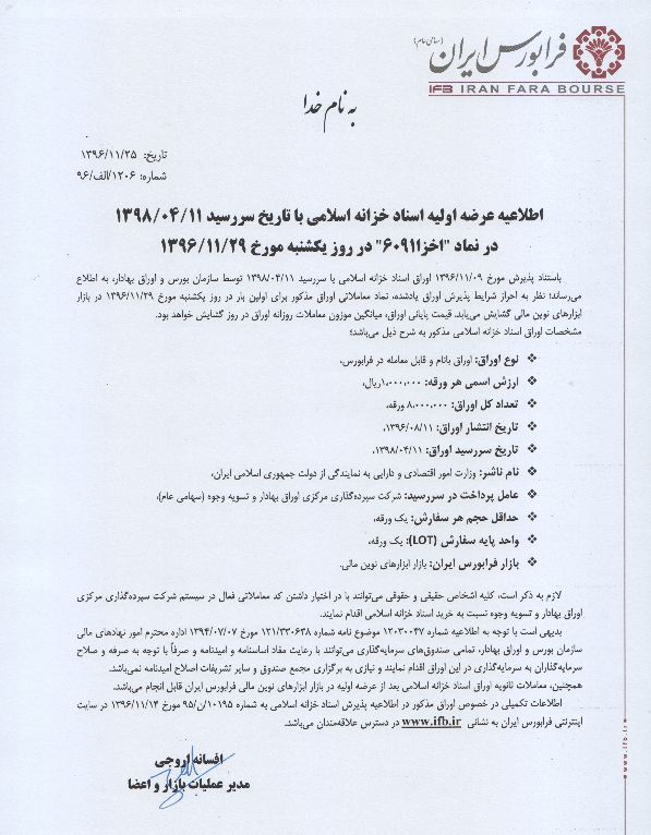 دو اوراق خزانه در هفته دیگر راهی فرابورس می شود..