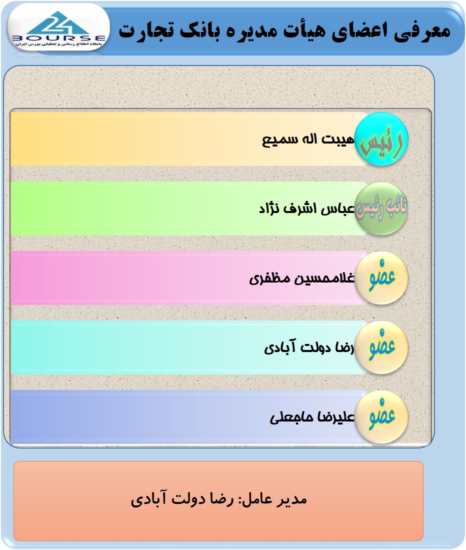 به گزارش کدال نگر بورس٢۴،بانک تجارت رسما اعضای هیئت مدیره خود را معرفی کرد.
