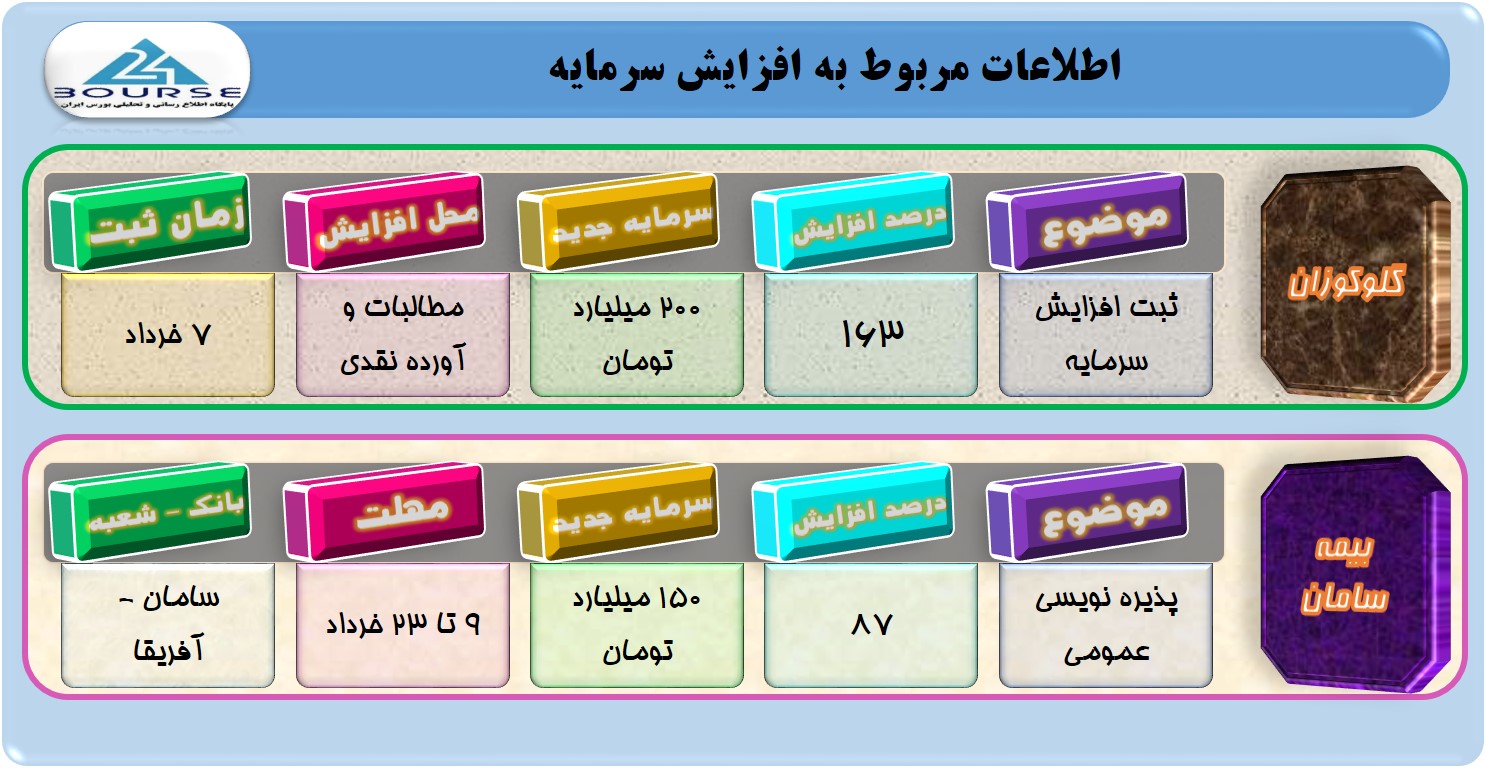 به گزارش کدال نگر بورس٢۴،دو شرکت دیگر از آخرین مراحل افزایش سرمایه خود گفتند.