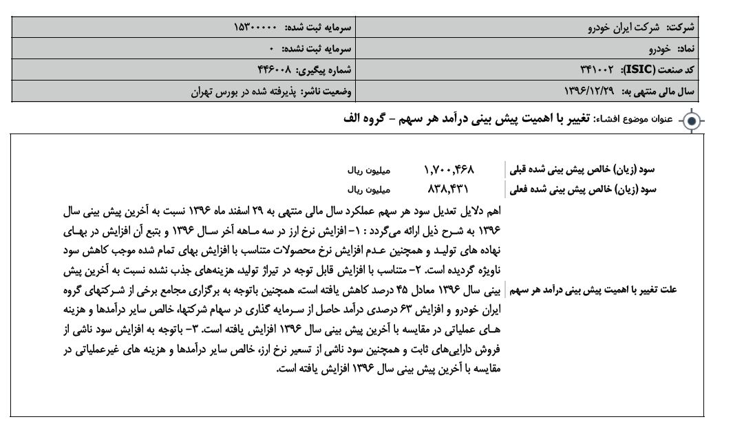به گزارش کدال نگر بورس٢۴، ایران خودرو در حالی بودجه خود را با تعدیل منفی سنگین ۵١ درصدی همراه ساخت که شرکت علل تعدیل منفی را افزایش نرخ ارز در سه ماهه آخر سال ١٣٩۶ و بتبع آن افزایش در بهای نهاده های تولید و همچنین عدم افزایش نرخ محصولات متناسب با افزایش بهای تمام شده موجب کاهش سود ناویژه گردیده است. ٢- متناسب با افزایش قابل توجه در تیراژ تولید، هزینه‌های جذب نشده نسبت به آخرین پیش بینی سال ١٣٩۶ معادل ۴۵ درصد کاهش یافته است، همچنین باتوجه به برگزاری مجامع برخی از شرکتهای گروه ایران خودرو و افزایش ۶٣ درصدی درآمد حاصل از سرمایه گذاری در سهام شرکتها، خالص سایر درآمدها و هزینه های عملیاتی در مقایسه با آخرین پیش بینی سال ١٣٩۶ افزایش یافته است. ٣- باتوجه به افزایش سود ناشی از فروش دارایی‌های ثابت و همچنین سود ناشی از تسعیر نرخ ارز، خالص سایر درآمدها و هزینه های غیرعملیاتی در مقایسه با آخرین پیش بینی سال ١٣٩۶ افزایش یافته است