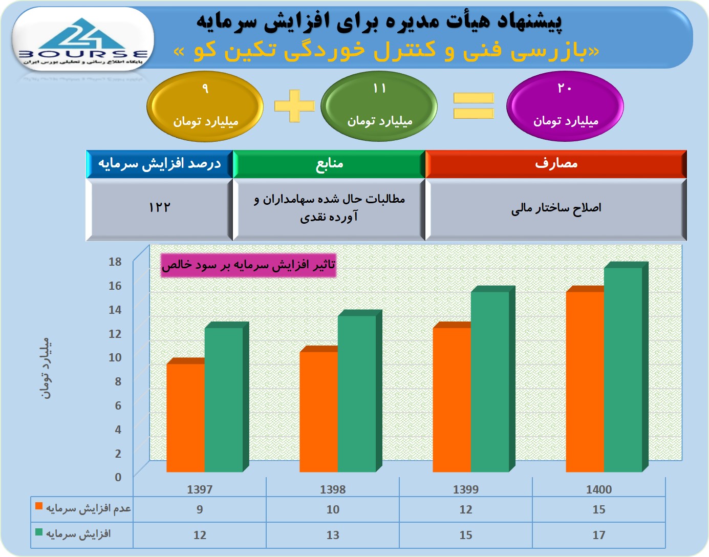 به گزارش کدال نگر بورس ٢۴، هیدت مدیره شرکت تکین کو، افزایش سرمایه ١٢٢ درصدی این شرکت را مورد تصویب قرار داد.