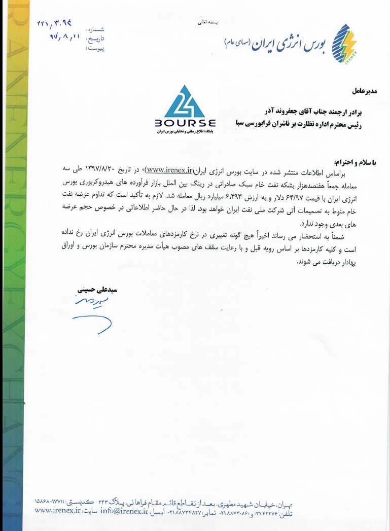 به گزارش کدال نگر بورس ٢۴، شرکت بورس انرژی ایران در خصوص معاملات انجام شده نفت خام سبک صارداتی در رینگ بین الملل بازار فرآورده های هیدروکربوری این بورس توضیحاتی ارائه نمود.