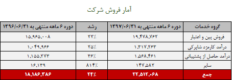 همچنین بر اساس صورت های مالی، طی دوره شش ماهه ابتدایی 97 شرکت 1602 میلیاردریال سود خالص شناسایی کرده که این رقم نسبت به مدت مشابه سال گذشته با افزایش 21 درصدی (ناشی از افزایش درآمدهای عملیاتی) همراه بوده است. فروش خالص شرکت نیز در 6 ماهه نخست 97 برابر با 22512 میلیارد ریال می باشد که رشد 24 درصدی نسبت به دوره مشابه سال قبل را نشان می دهد. درآمدهای آپ طی این دوره به فروش پین و اعتبار، کارمزد تراکنش شاپرکی، پشتیبانی دستگاه های پوز بانکی و ... اختصاص داشته که به ترتیب در این سه بخش اصلی رشد 22%، 25% و 36 درصدی نسبت به 6 ماهه سال مالی قبل را کسب کرده است.