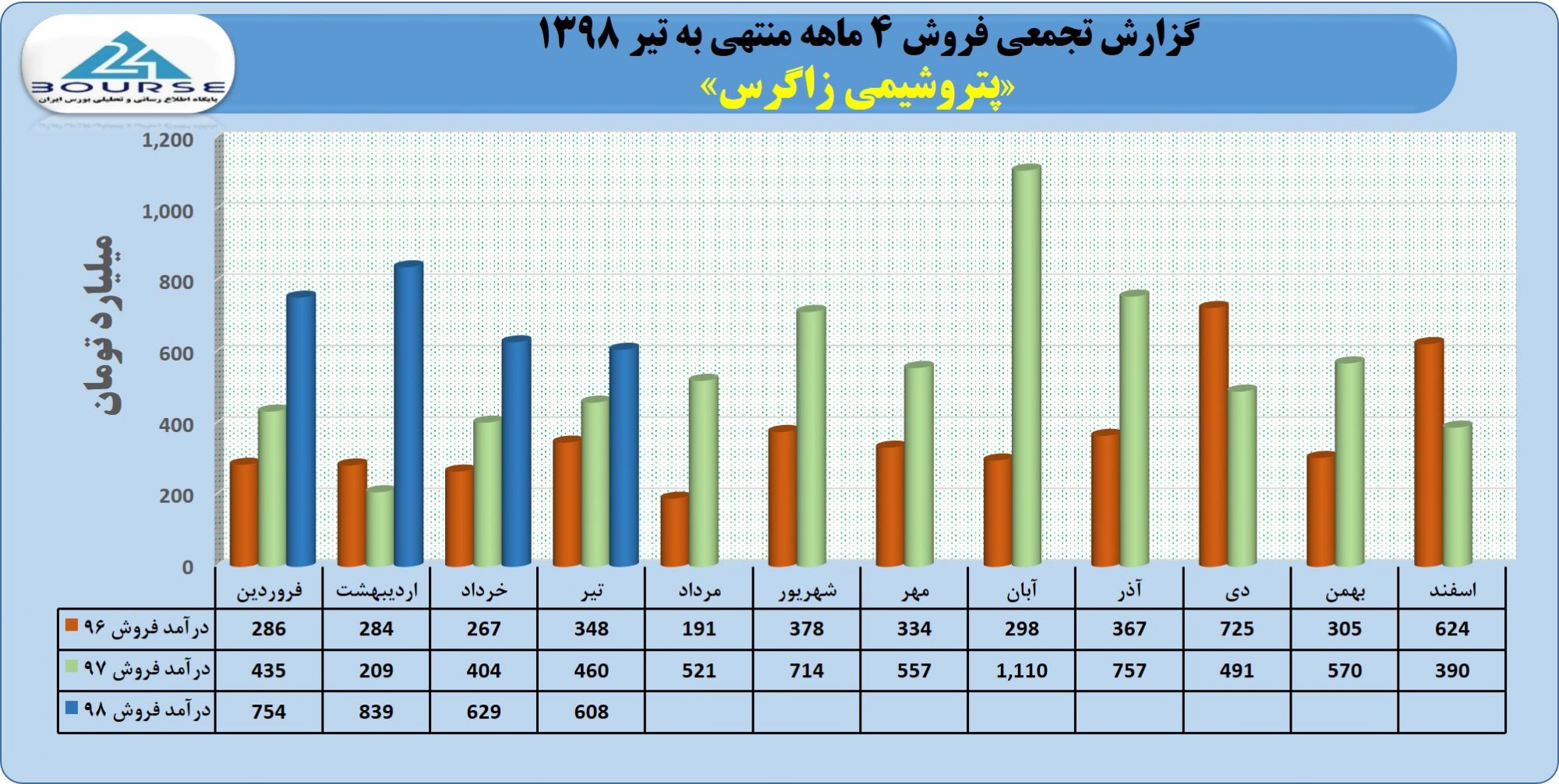 به گزارش کدال نگر بورس ٢۴، درآمد شرکت پتروشیمی زاگرس در ۴ ماه نخست سال مالی ١٣٩٨ به بیش از ٢٨٩٨ میلیارد تومان رسید.
