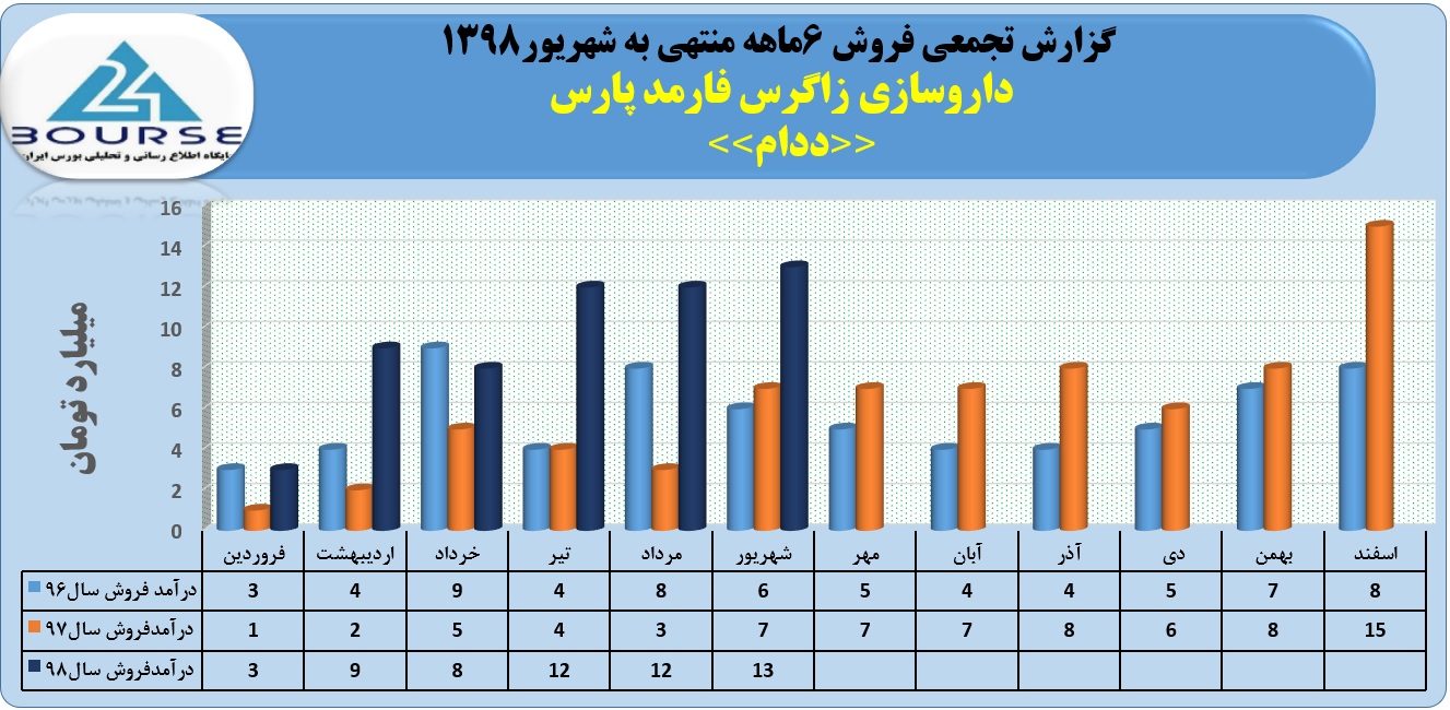 به گزارش کدال نگر بورس ٢۴،شرکت داروسازی زاگرس فارمد پارس در ۶ماهه منتهی به شهریور ٩٨ حدود ۵٨میلیارد تومان درآمد فروش داشته است که حدود ١٣میلیارد تومان از این مبلغ متعلق به شهریور ماه می باشد.