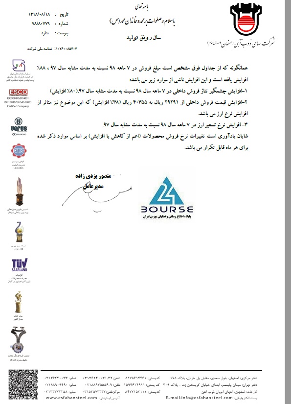 شفاف سازی ذوب آهن اصفهان در خصوص عملکرد