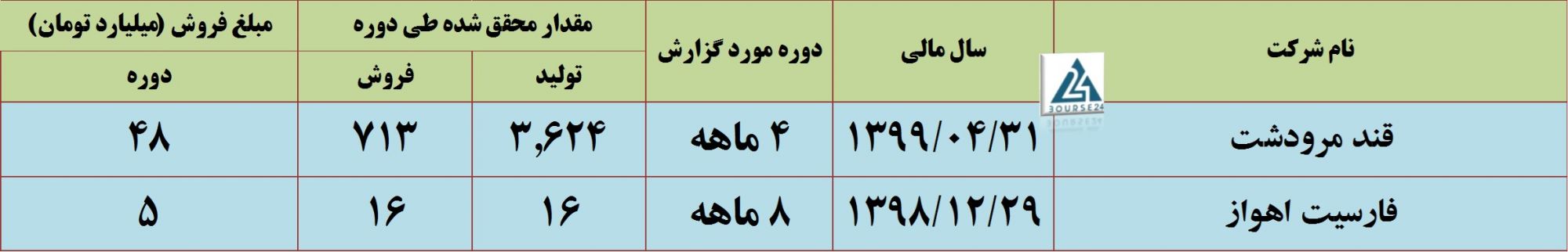 گزارشی از تولید و فروش دو شرکت تا پایان آبان