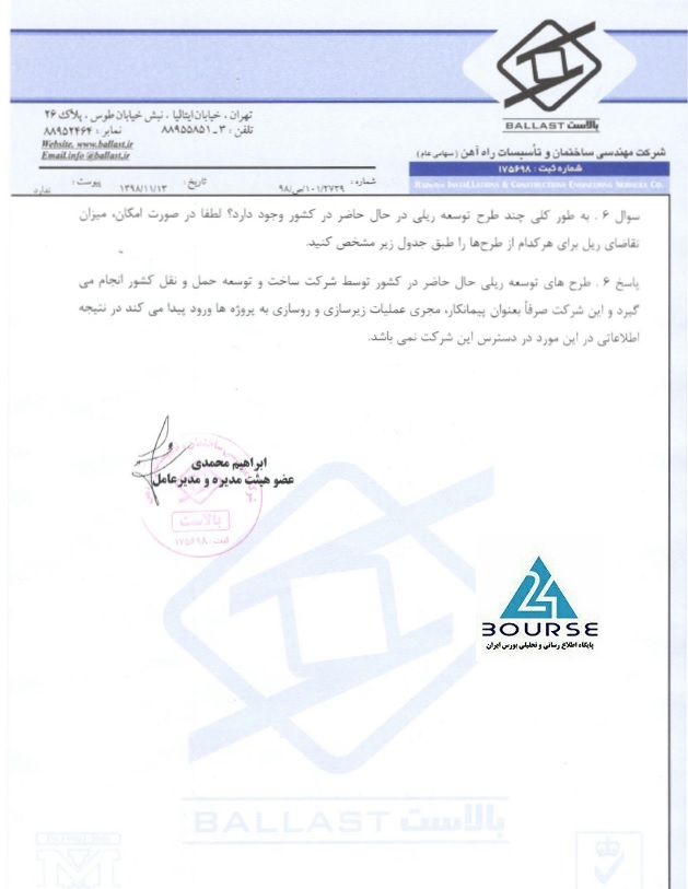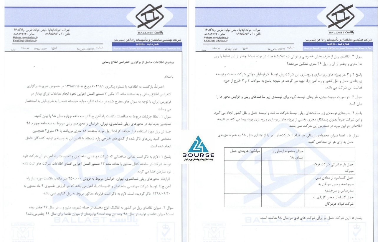 به گزارش کدال نگر بورس ٢۴، شرکت مهندسی ساختمان و تأسیسات راه آهن اهم مطالب مطرح شده در کنفرانس اطلاع رسانی برگزار شده را منتشر نمود.