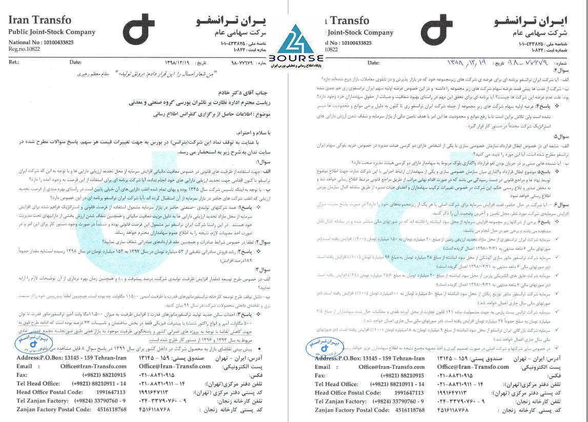 بورس24 : صحبت از ایران ترانسفو است.سهمی که از رشد کلی بازار ماند ، اما پس از رشد اخیر در بازار سرمایه اطلاعات مهمی را در کنفرانس اطلاع رسانی روانه سامانه کدال کرد.