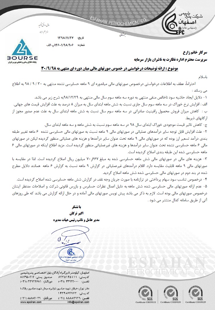 توضیحات پتروشیمی اصفهان در خصوص صورت های مالی