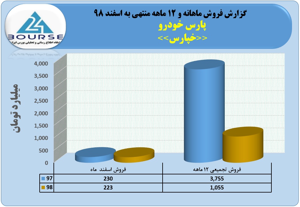 به گزارش کدال نگر بورس ٢۴،شرکت پارس خودرو که در بهمن ماه ٢٠٣ میلیارد تومان فروخته بود در اسفند ماه با رشد همراه بوده و ٢٢٣ میلیارد تومان فروش داشته است.مجموع فروش ١٢ ماهه منتهی به اسفند ١٣٩٨ حدود ١٠۵۵ میلیارد تومان می باشد.