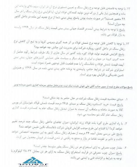 به گزارش کدال نگر بورس ٢۴،شرکت ذغال سنگ نگین طبس در کنفرانس اطلاع رسانی به سوالات مطرح شده از جمله ظرفیت عملی شرکت و پیش بینی تولید سال مالی جاری پاسخ داد.