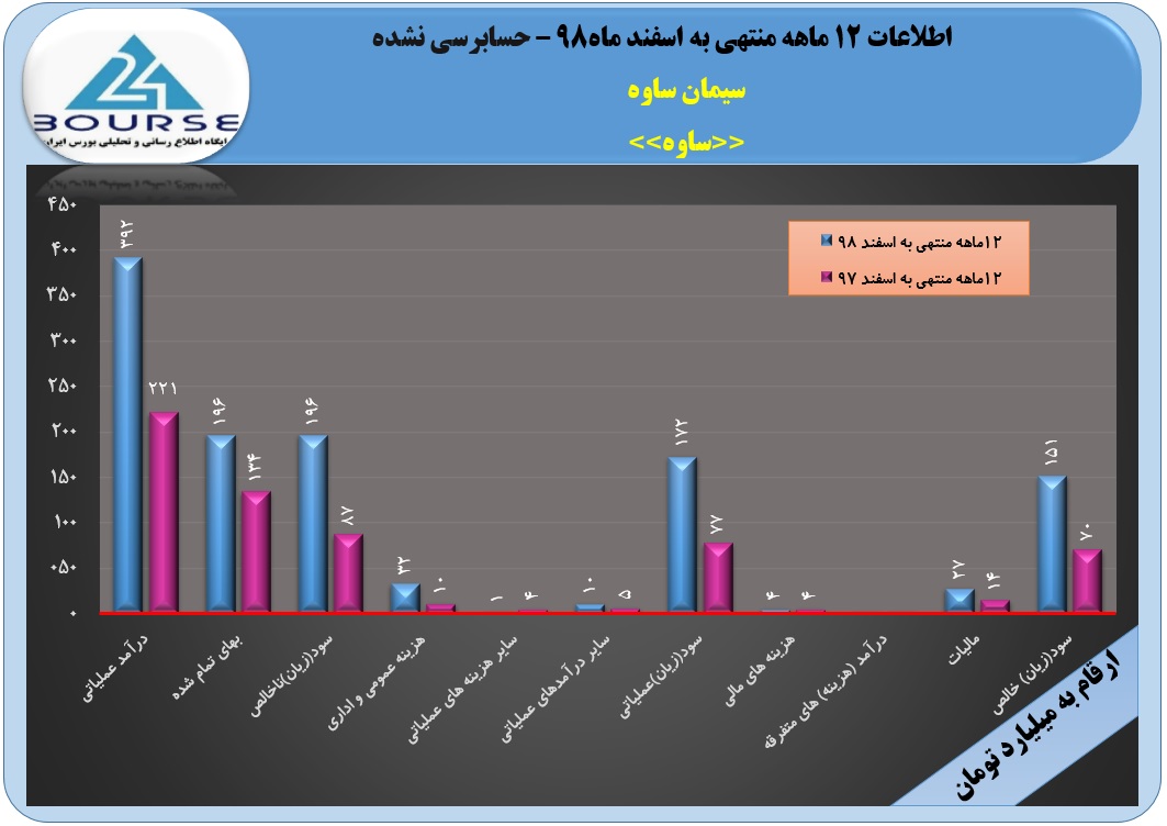 به گزارش کدال نگر بورس ٢۴،شرکت سیمان ساوه در ١٢ ماهه منتهی به اسفند ١٣٩٨ حدود ٢٣٢٨ ریال به ازای هر سهم سود محقق کرده است که ١١۶ درصد نسبت به دوره مشابه سال گذشته رشد داشته است.گفتنی است در این دوره درآمد های عملیاتی ٧٧ درصد و سود عملیاتی ١٢٣ درصد نسبت به دوره مشابه سال گذشته رشد داشته است.