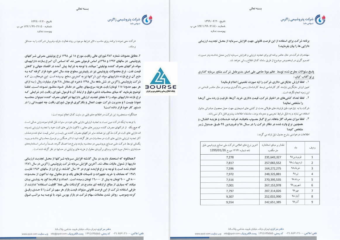 پیش بینی پتروشیمی زاگرس از تولید و فروش در سال ٩٩