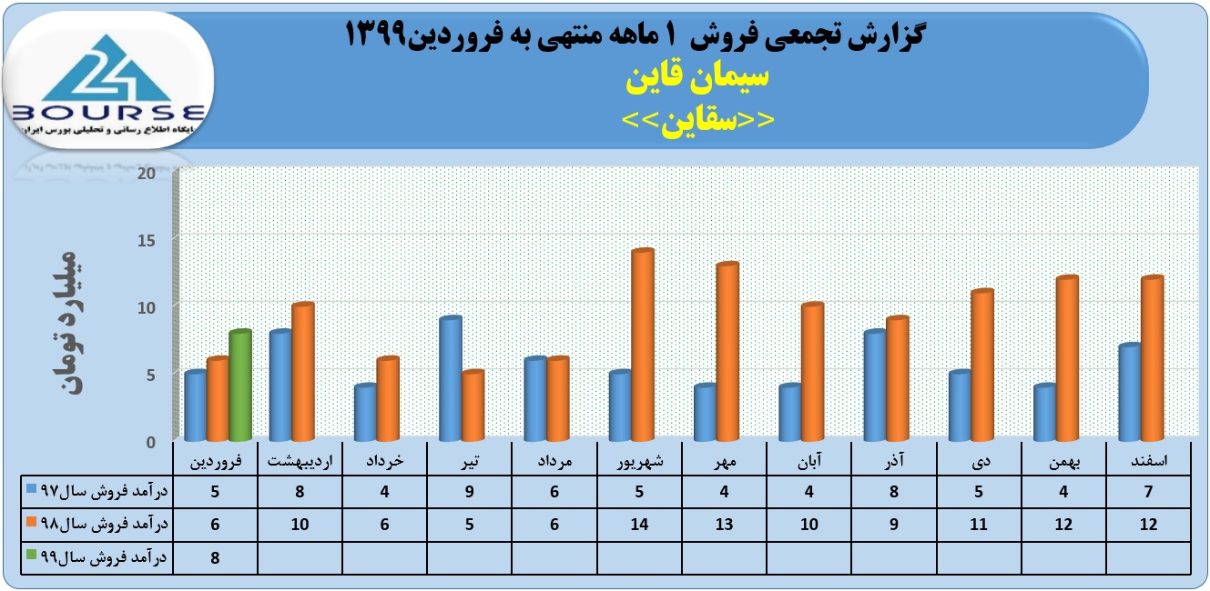 به گزارش کدال نگر بورس ٢۴،فروش ١ماهه منتهی به فروردین ١٣٩٩ شرکت سیمان قاین به حدود ٨ میلیارد تومان رسید.