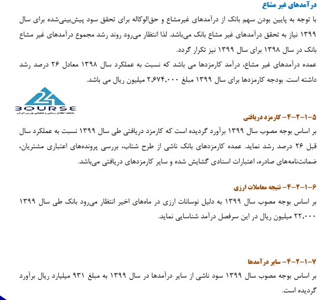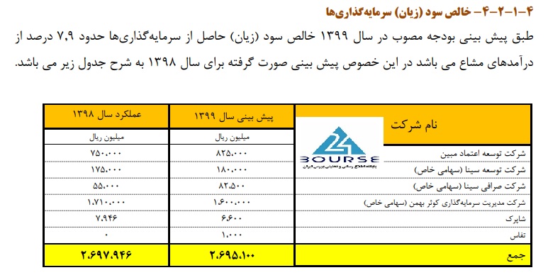 به گزارش کدال نگر بورس ٢۴،بانک سینا در گزارش تفسیری اعلام داشت، مجموع درآمد های این بانک در سال ١٣٩٩ حدود ٣٧٧٠ میلیارد تومان برآورد شده است در حالی که در سال ٩٨ حدود ٣٣۵٠ میلیارد تومان بود.مجموع هزینه های بانک برای سال ٩٩ حدود ٣۴٢٠ میلیارد تومان پیش بینی شده است در نهایت سود خالص برآورده شده برای سال ١٣٩٩ بانک سینا حدود ٢١٠ میلیارد تومان می باشد که در سال ١٣٩٨ حدود ١٧٢ میلیارد تومان بود.